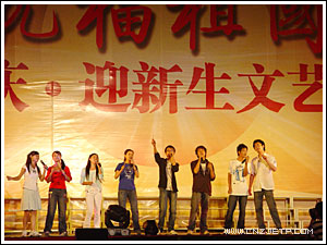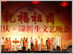 党委书记童学敏致晚会开幕词,童书记回顾了建国57年来我国取得的巨大成就及学院艰苦奋斗、稳步发展的历程,并代表全体教职员工对2006级新生的到来表示热烈欢迎!